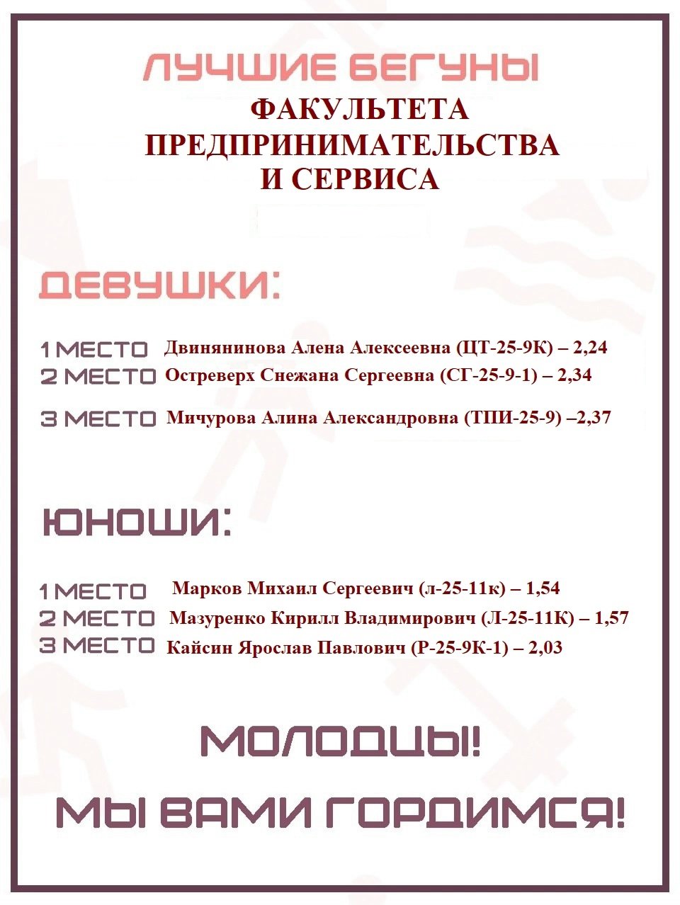 Справились на отлично!  Отдельная благодарность организаторам: Ирине Николаевне Двиняниновой, Алене Александровне Новиковой, Алексею Николаевичу Болотову и активистам Спортивного клуба!
